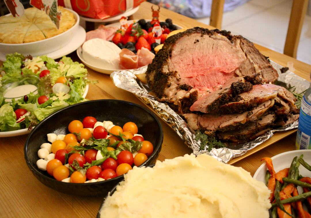 吃嗯Chen 做过 2023年12月26日 记录下今年的圣诞节这个牛排太心急了 外层过熟 靠近骨头的地方熟度又差一点点但小朋友说很好吃 这次这次的肉带骨7.6磅烤前30分钟用450温度 后转温度340烤一个多小时再拿出来锡纸盖30分钟下次把骨头剔出比较入味和好熟第二次温度低点 时间再拉长 2023-12-26