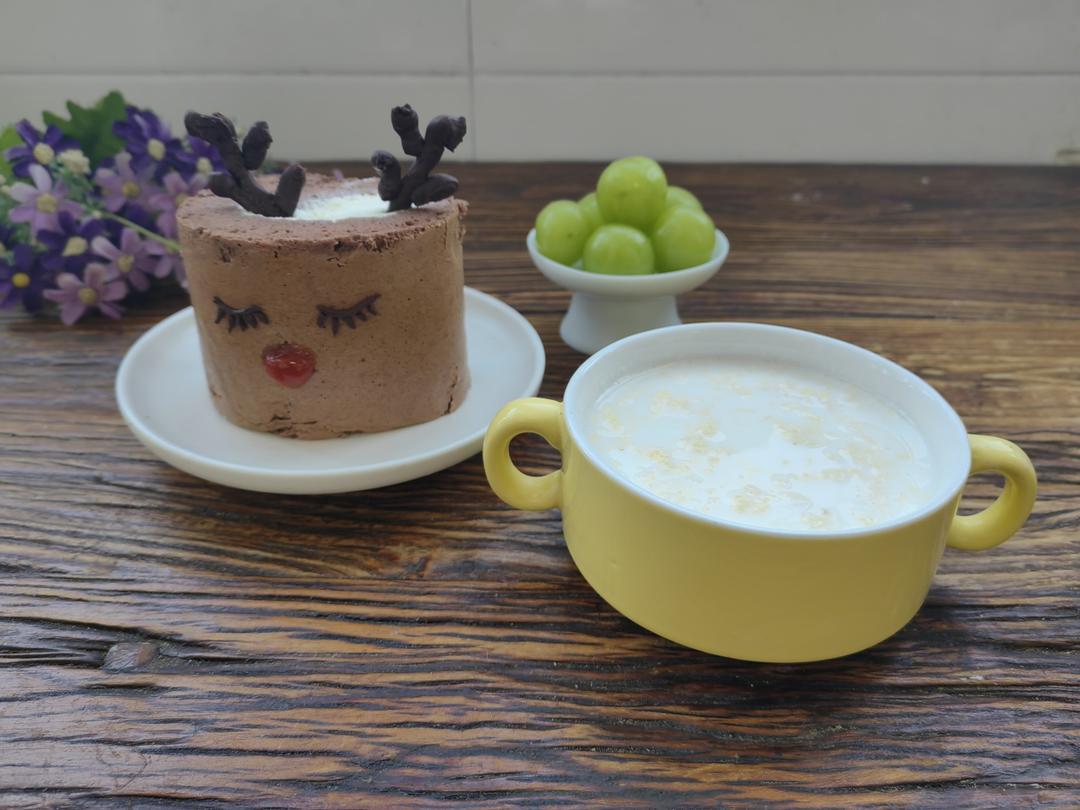 蛋花牛奶🥛+小鹿蛋糕卷🍰+葡萄🍇