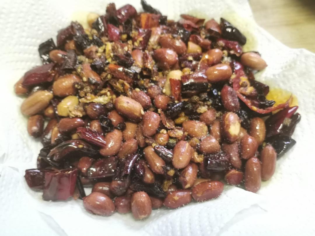 辣子鸡的辣椒重复利用下,辣炒花生米