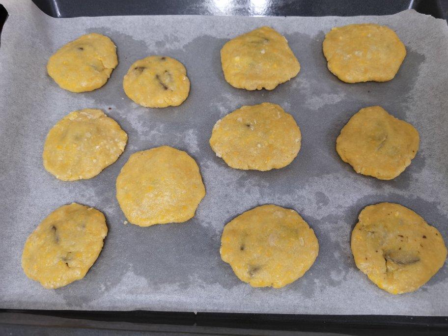 这次尝试糖减半、油减1/3、盐减少、鸡蛋加1.5倍;糖用两种:砂糖混合棉白糖,吃起来会有可爱的小颗粒感。巧克力跟包包子一样给她包进去。170℃热风烤到表面上色。