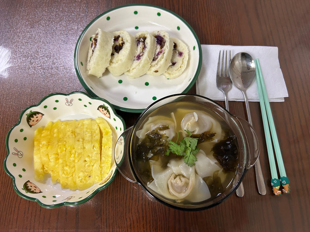 肉馄炖,五福卷,菠萝