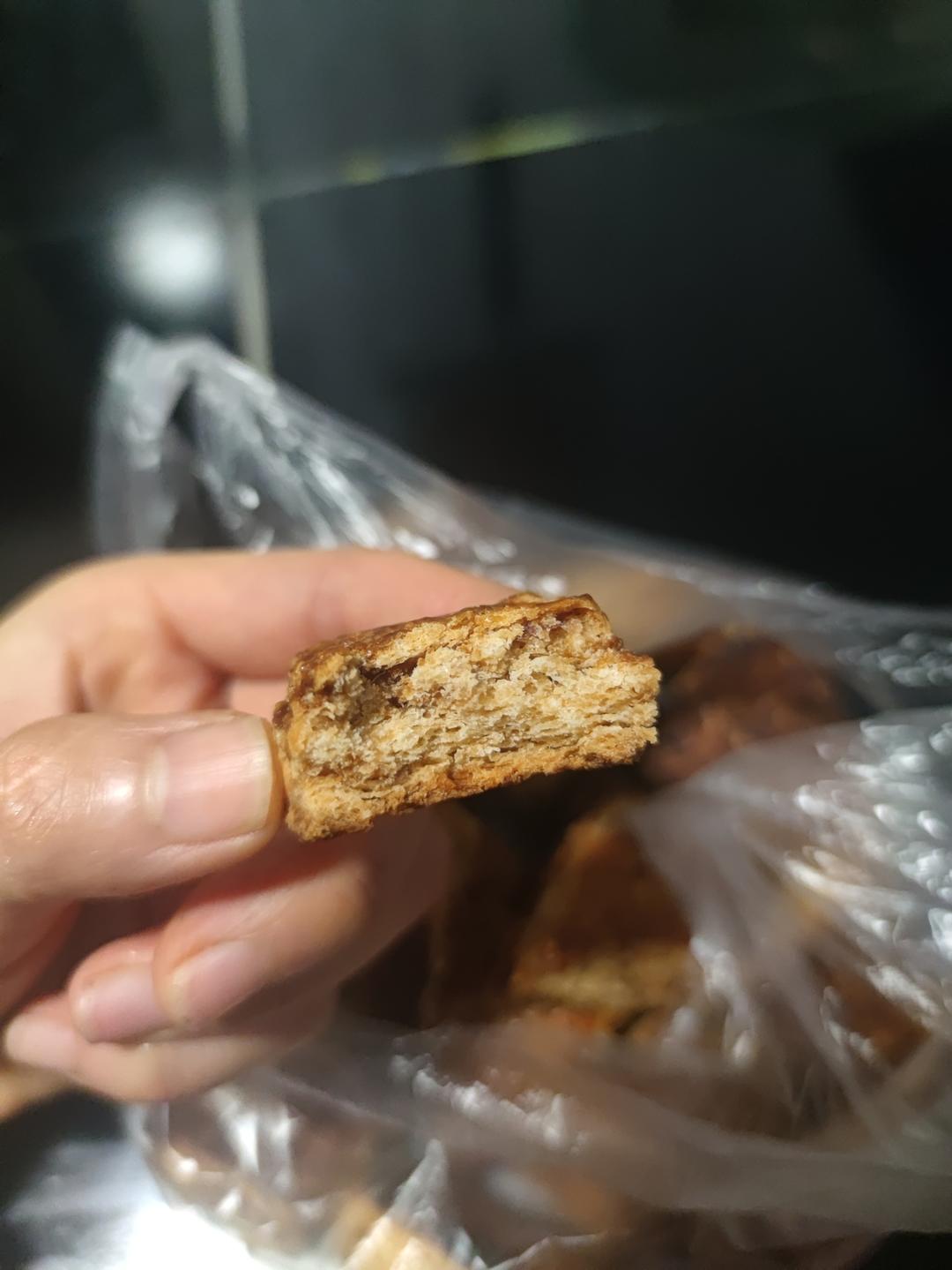 冬天又刷了一遍,这遍终于成功,味道绝了。我把黄油、蔓越莓和粉类一起放破壁机里打碎,直接就是酥粒状态,太方便了,不会因为天气温度高而混酥。放入液体大致成团后冰箱冷藏一夜,第二天擀成6mm厚度,切块,烤完后中间看上去有点没熟不用管,放凉后会发现其实已经熟了。温热的时候咬一口,吃出了可颂的口感,外层酥脆起酥,里面很松软,太好吃了。总算吃到了司康真正的样子,前几次都失败了,硬的和石头一样。
