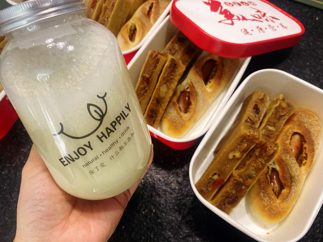 法式芥末籽香肠面包、贵妃糕、国宴豆浆