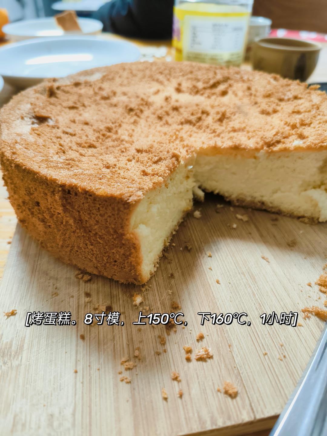 Sylvia-zhao 做过 6寸,8寸,10寸戚风蛋糕配方(已更新) 一口气做了4个,第一个蛋白没打发,失败。第二个塌腰。第三个烤久了,外皮太老。第四个勉强不错。上150下160,1小时。 2024-01-07