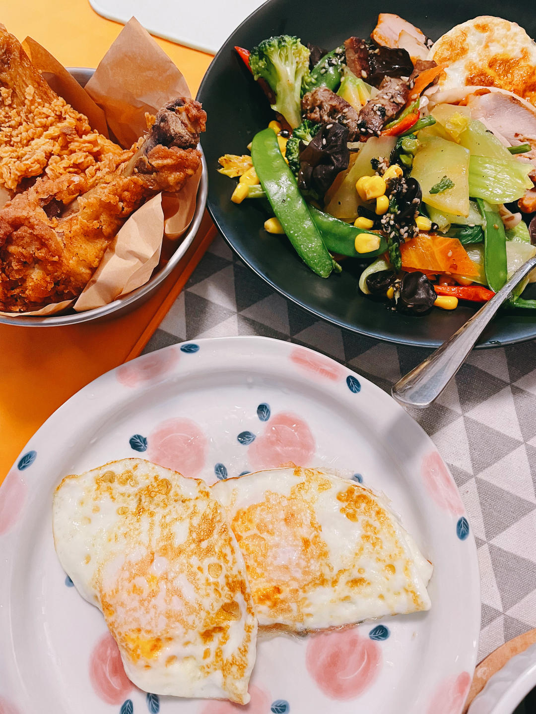 热沙拉炸鸡腿配银座吐司🍞车厘子🍒