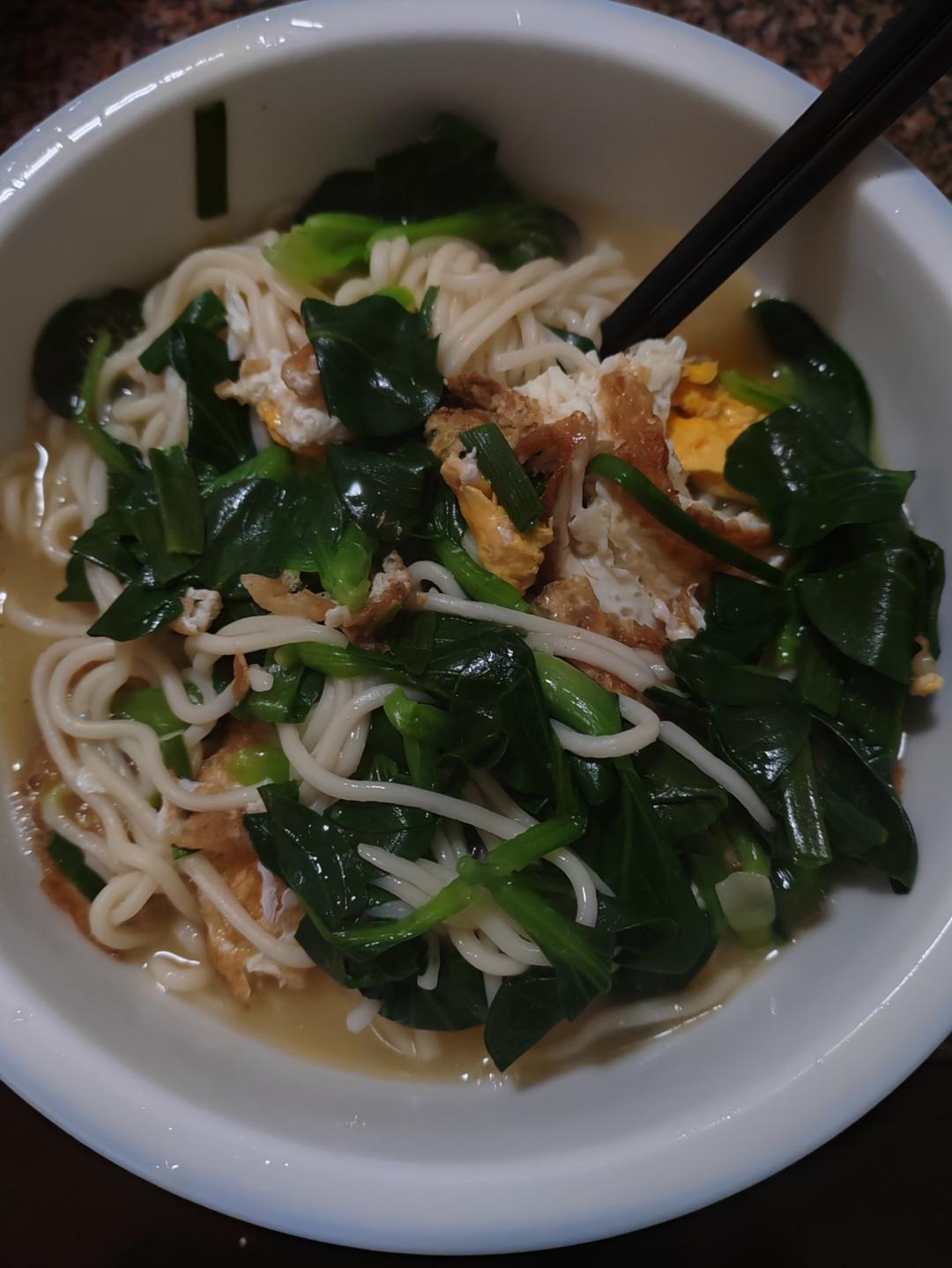宿舍早餐—荷包蛋青菜面