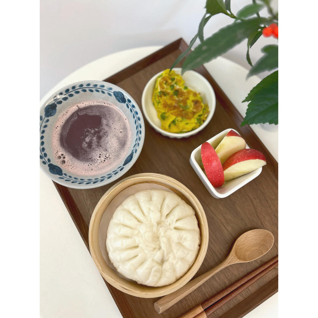 大酱肉包🥢黑芝麻糊🥄青椒鸡蛋🫑苹果🍎