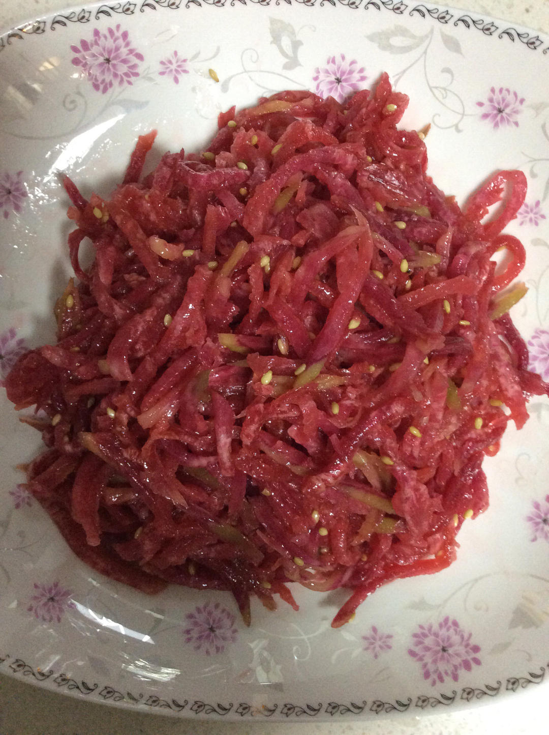 爽脆可口的凉拌红心萝卜丝
