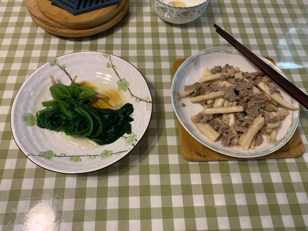 杏鲍菇炒牛柳+菠菜