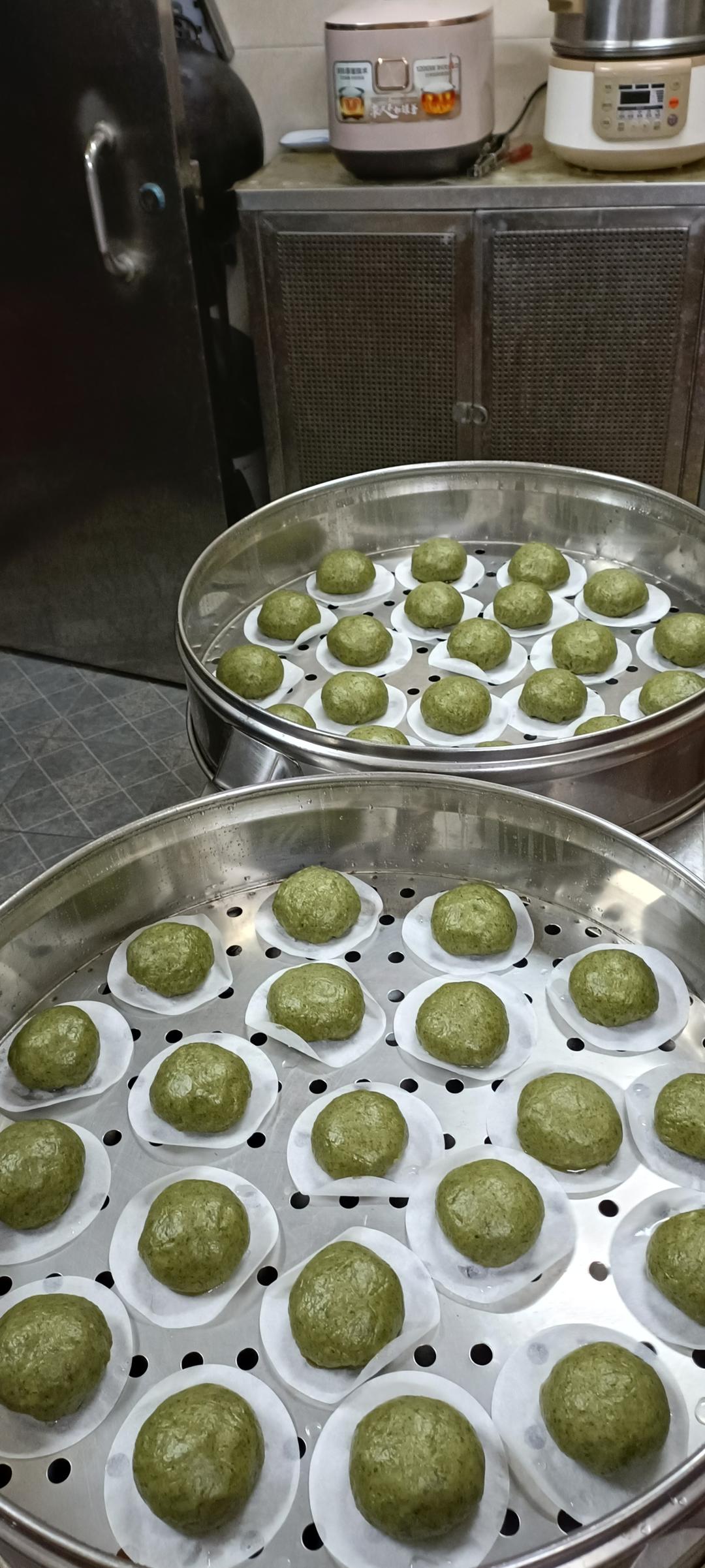鼠曲苗(细艾)粄。腊肉虾米油豆腐干萝卜蒜苗芹菜馅。