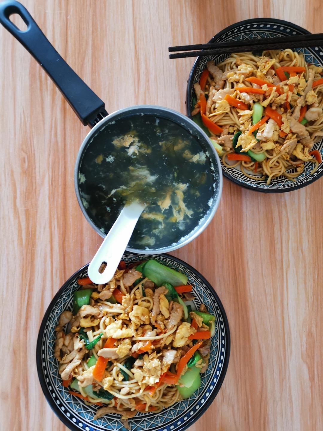 青菜炒面+紫菜蛋花汤