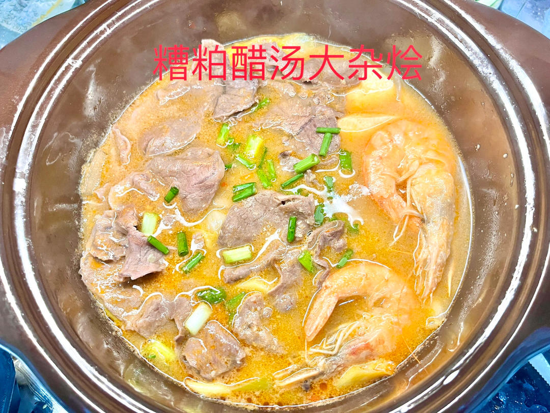 cocowang79 做过 2024年02月24日 糟粕醋汤大杂烩食材:虾/牛肉/青菜/豆腐/洋葱配料:糟粕醋调料(买现成的)可以自制,我懒做法糟粕醋调味料加水调制,按个人口味,我怕辣用的不多,喜欢辣的用的多也够辣吧,我自己加了点糖,然后把食材按易熟快慢,慢的先放,煮开就好拉~祝大家用餐愉快! 2024-02-24
