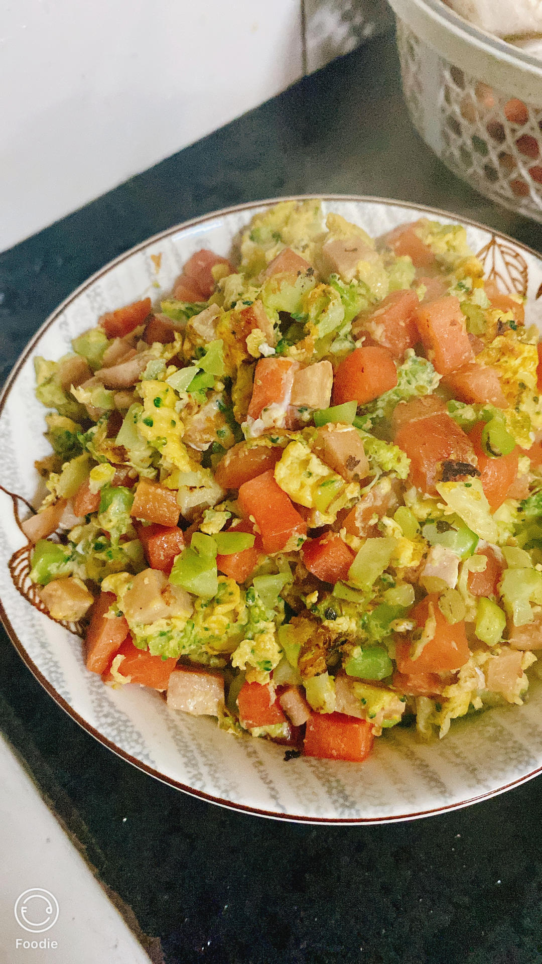CountDracula_掉进欧美爬不出 做过 营养美味低热量:西兰花蛋炒饭 #晚餐•2024年2月27日# #不然咱减个肥吧# 综合了一下花椰菜蛋炒饭的做法,把西兰花切成碎末代替米饭。午餐肉丁炒香,再下西兰花末和胡萝卜丁。炒出一点水分后再加蛋。1/4个西兰花,一根胡萝卜,1/3盒午餐肉,两个鸡蛋,满满一锅。可以吃两餐。 2024-02-27