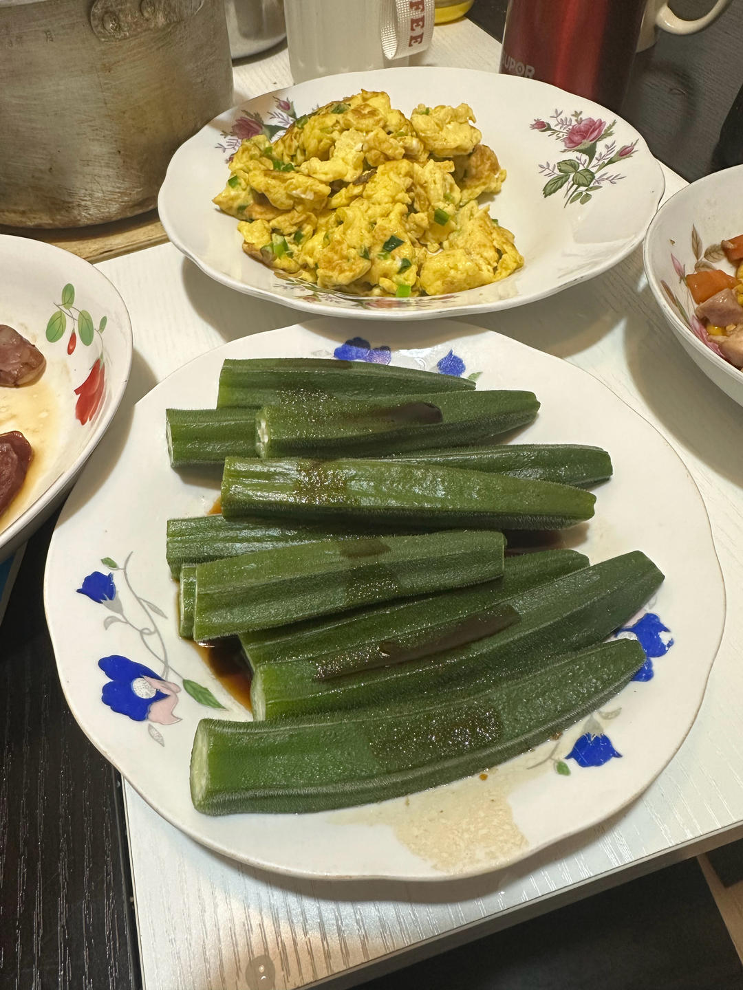 蒸秋葵,淋上生抽和蒸鱼豉油,美味