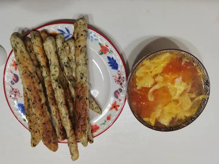 茴香小油条+西红柿鸡蛋汤,小茴香的味道绝美!