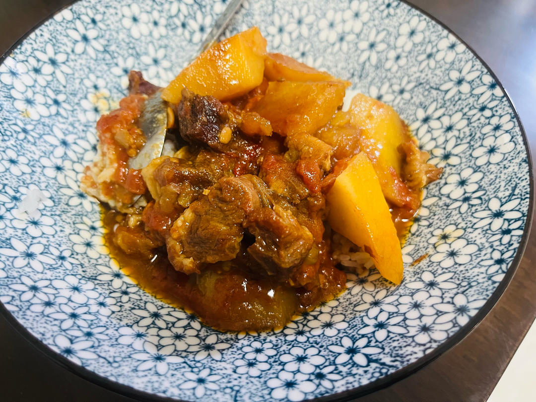 西红柿土豆炖牛肉,汤汁拌米饭绝了