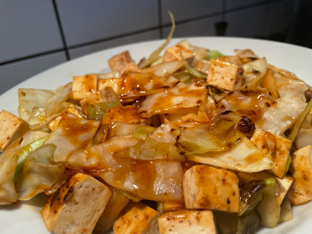 酱香浓郁❗️超级好吃的煎豆腐烧手撕包菜