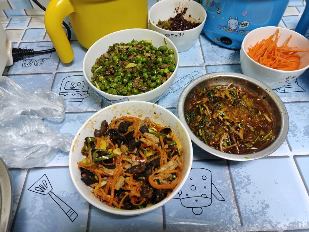 鱼香肉丝,豌豆炒肉沫,凉拌水晶粉
