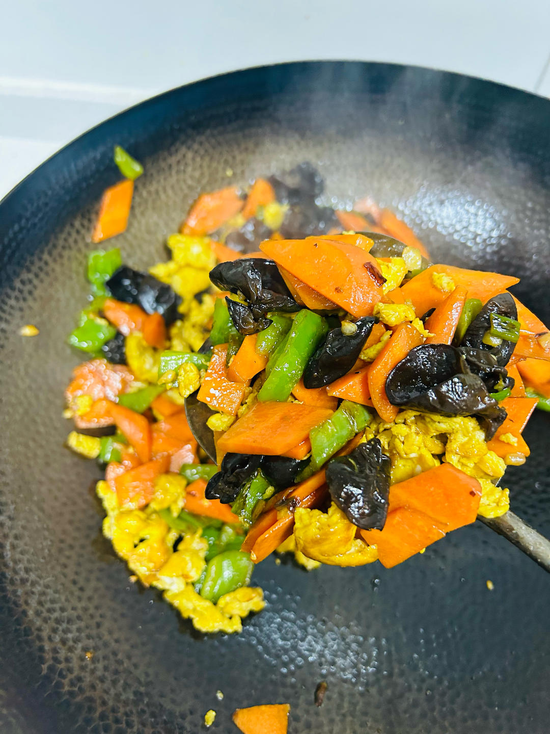 这么搭配也太香了!青椒胡萝卜木耳炒鸡蛋