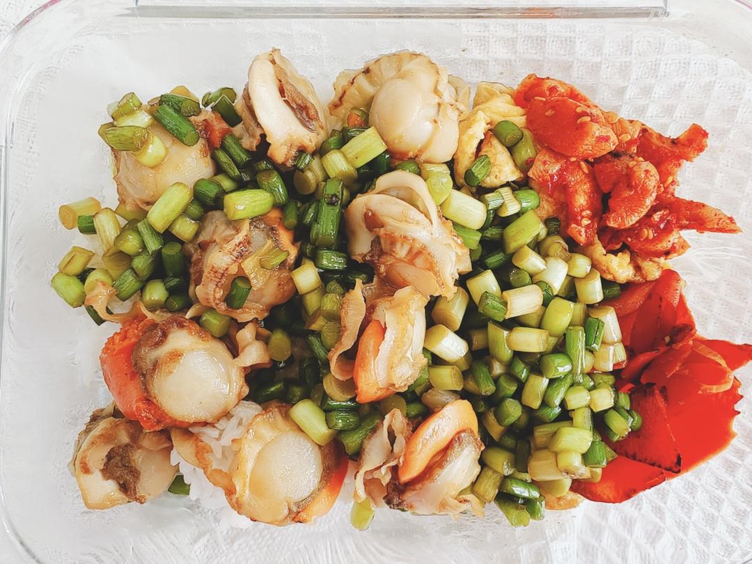 ❥蒜薹扇贝丨胡萝卜鸡蛋丨白米饭〉