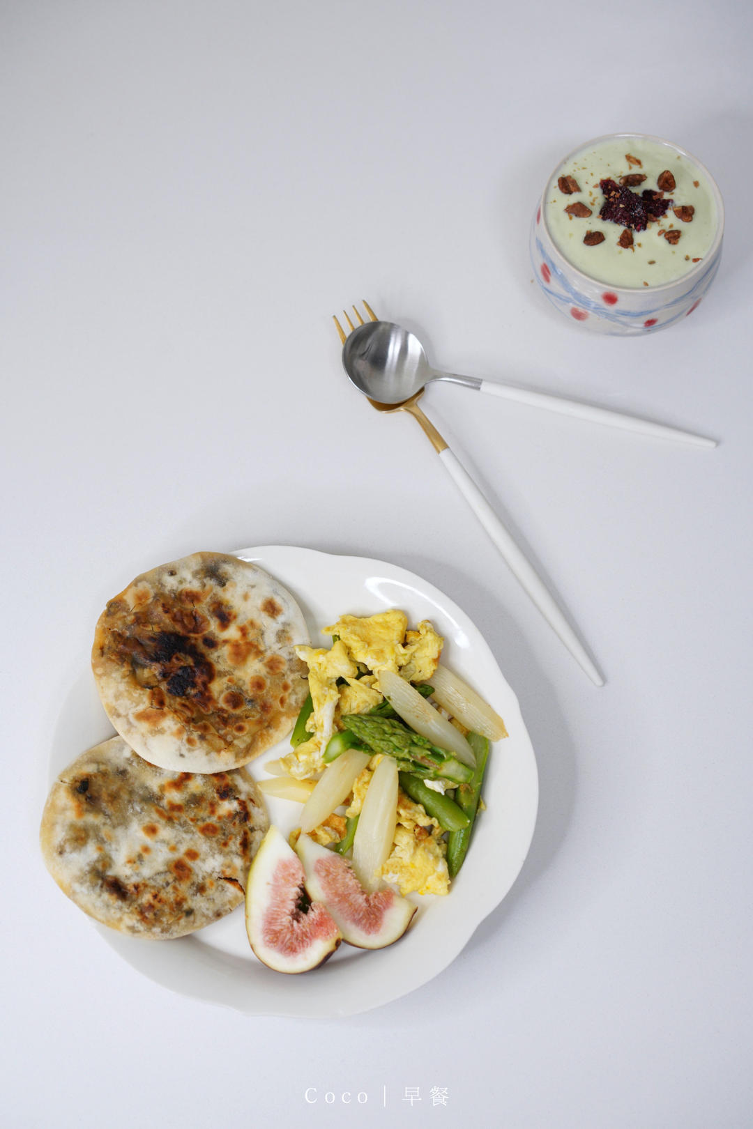 Coco漫心臻坊 做过 早餐•2024年4月19日 今天早餐安排梅干菜饼,铁锅烘烤2分钟就能吃的一款小饼,梅干菜的加入饼特别香,一口气炫了两。白芦笋好甜,弟弟很喜欢,绿色芦笋全留给了我。给孩子们准备的是芒果奶昔,给自己安排了一杯牛油果奶昔。#早餐•2024年4月19日# 2024-04-19