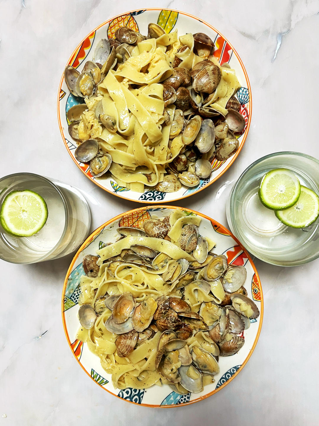 艺安JoeyM 做过 晚餐•2024年4月20日 #晚餐•2024年4月20日# #蒜香奶油蛤蜊意面# 就是蒜香奶油蛤蜊加上煮好的意面拌一起,味道还可以,但今天弄咸了,不过也没太影响。一人一大盘看着多,其实是因为蚬子带着壳显得多,一斤半的蚬子肉也没多少。面条放的不多,所以最后填了点米饭。 2024-04-20