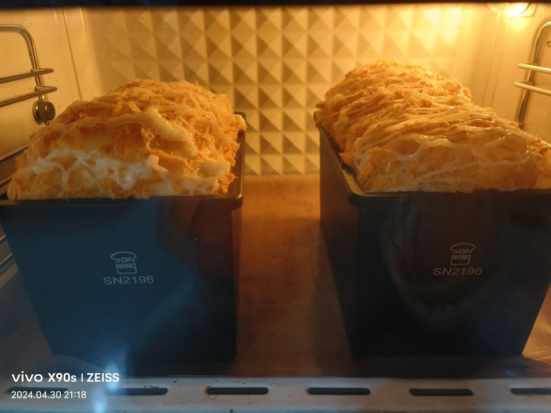missayuer 做过 双重芝士早餐吐司 味道蛮好的满满的料娃很爱吃,为消耗肉松在外面撒了一层肉松沙拉,含水量大扶正晾凉的时候又给我扣凹进去了,每次都是斜边四边形😂 #芝士吐司# 2024-05-02