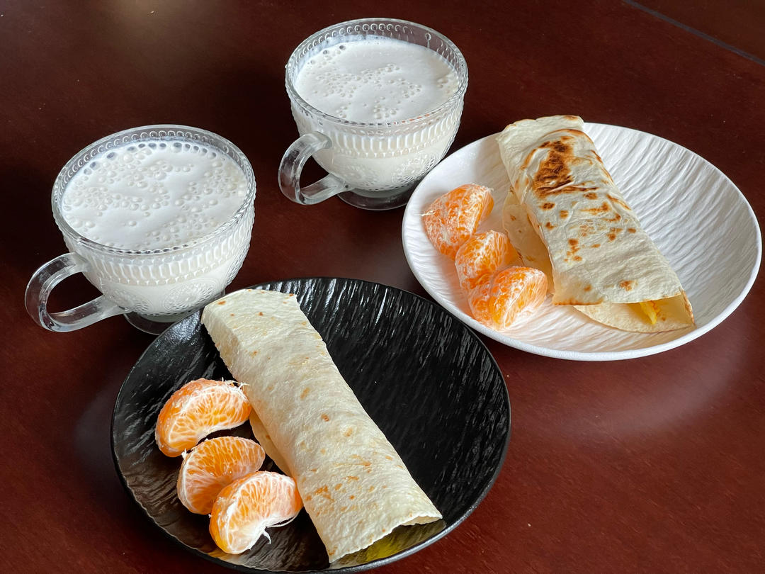 蟹柳鸡蛋卷饼+牛奶燕麦