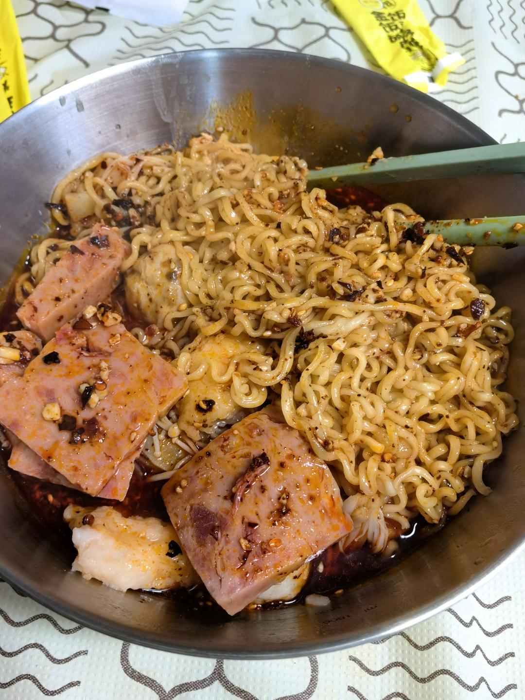 买了调料包,加水和蒜泥即可,零厨艺