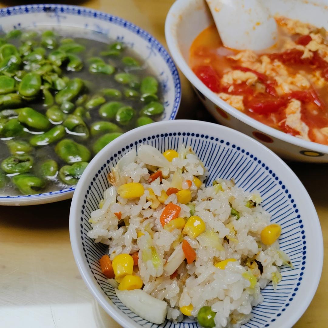 经妈妈提醒,原来昨天是立夏,吃蚕豆、五彩饭,用小朋友的饭碗留个念
