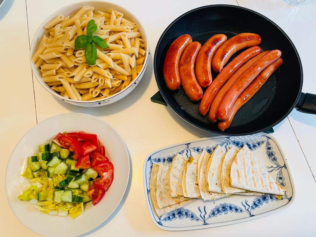 海燕的食品实验室 做过 晚餐•2024年5月9日 今天是个小假期,在家干了一天的活,晚餐简单一点,零厨艺:煎了几根香肠🌭当晚餐。图5-9: 昨天晚上去外面吃自助,很开心,不用做饭。😁#晚餐•2024年5月9日# 2024-05-10