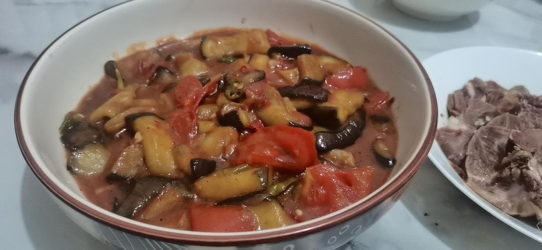 红烧茄子(佐西红柿尖椒)