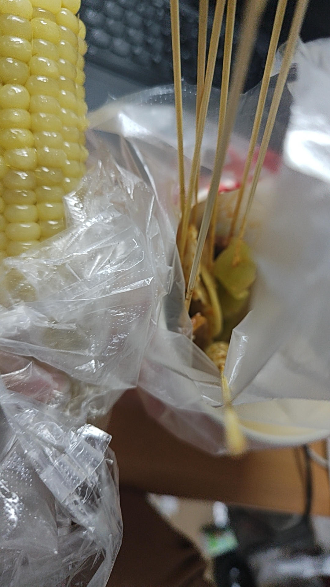 玉米,烤鸡翅,烤肠,奶茶,钵钵鸡