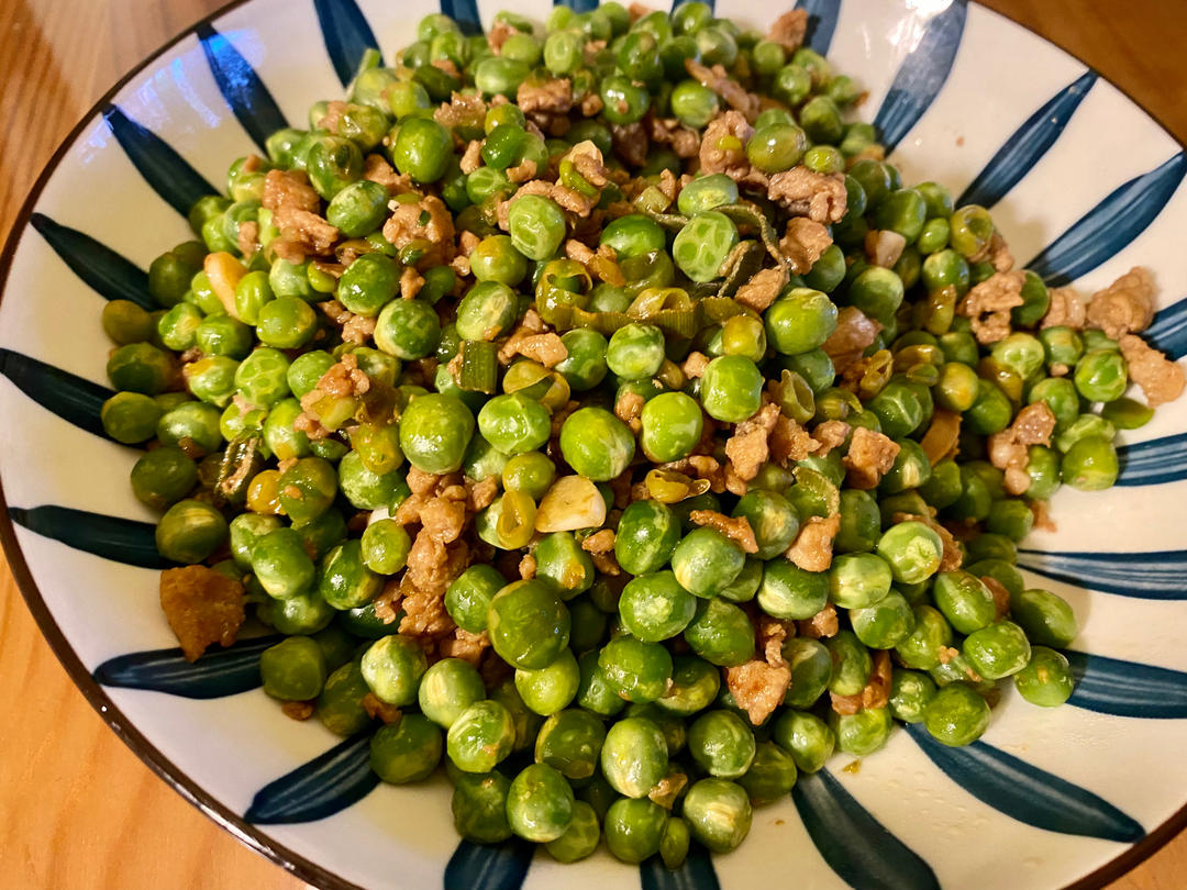 甜豆炒肉末,老公第一次尝试,非常成功😘
