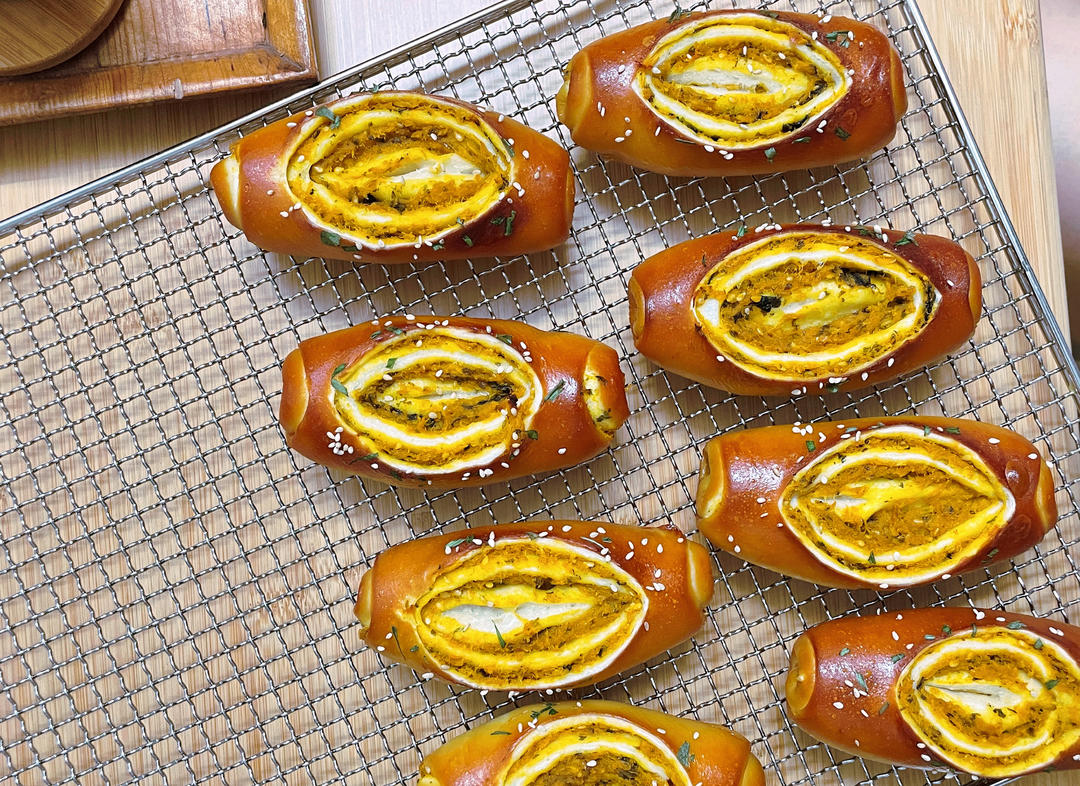 南瓜肉松咸蛋黄碱水面包