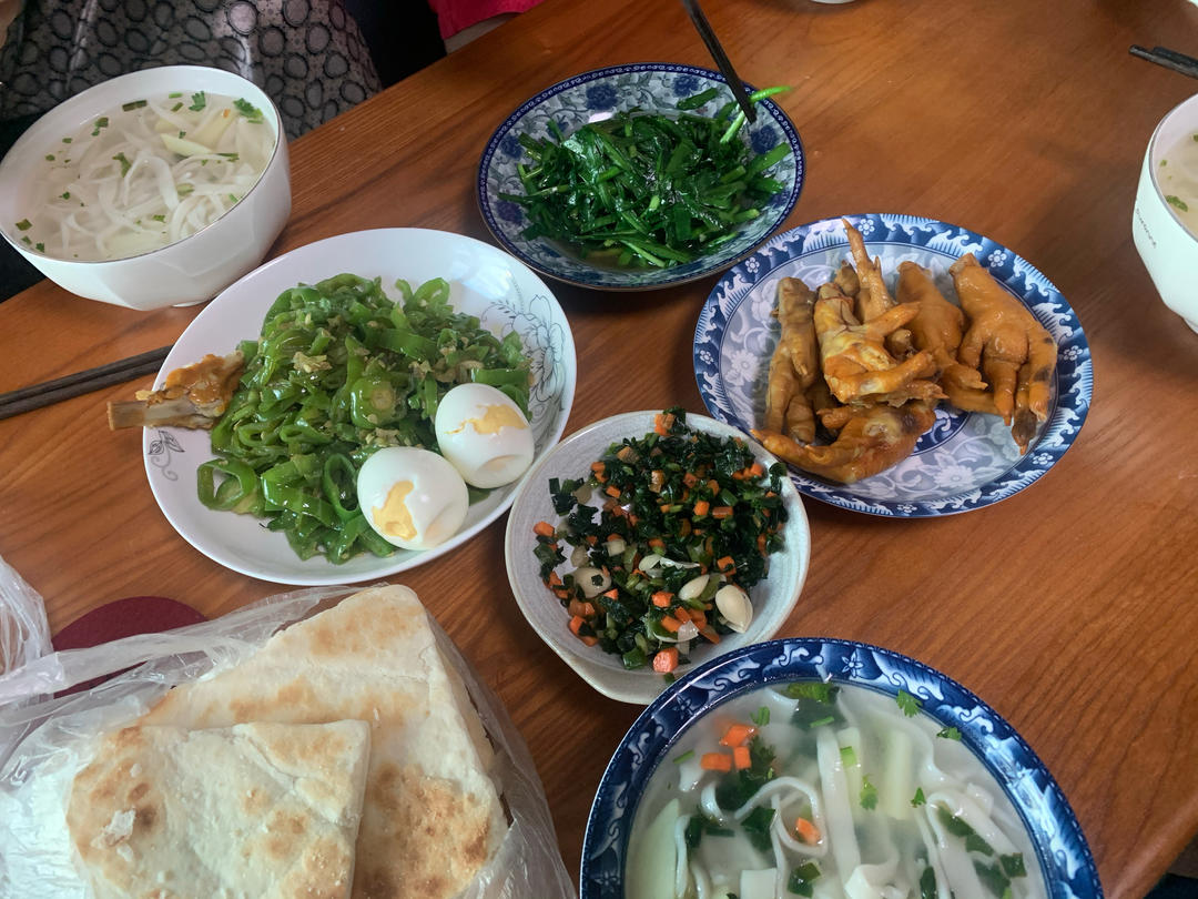 可能也是有点操心,我早上4点多就醒了,和好了晚上要吃的面,打算到时油醒拉或扯,而妈妈不顾舟车劳顿,说擀面吃更香,我也正好想吃妈妈的手擀面了,就由妈妈擀切疙瘩子(柳叶),然后我们一人炒一个菜,于是有了这顿“下车面”。看妈妈调汤,我才知我平时不中和面汤,直接浆水,原来大错特错,怪不得老公每次吃我调的浆水面被酸得呲牙咧嘴吐舌头😅