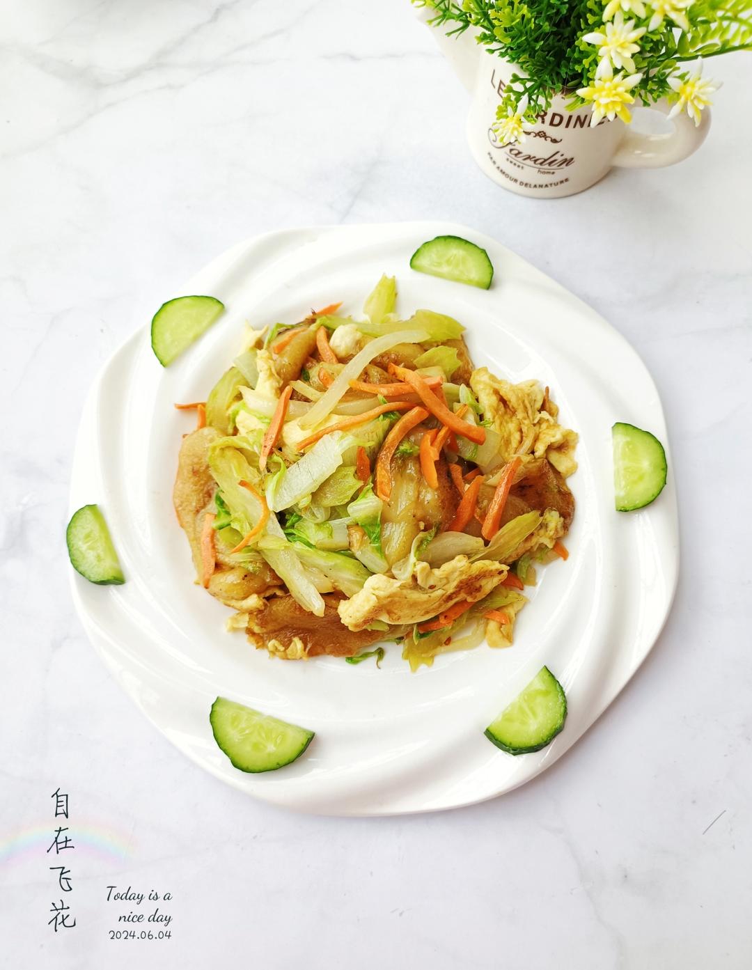 早餐:杂蔬鸡蛋炒灰水糍+无花果干怀山瘦肉汤