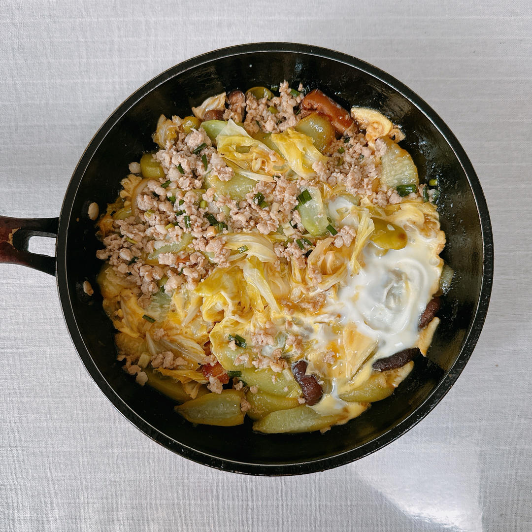 肉沫,咸肉,丝瓜,包心菜,香菇,鸡蛋
