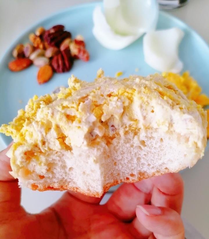 取一半鹅蛋黄与奶酪酱混合~