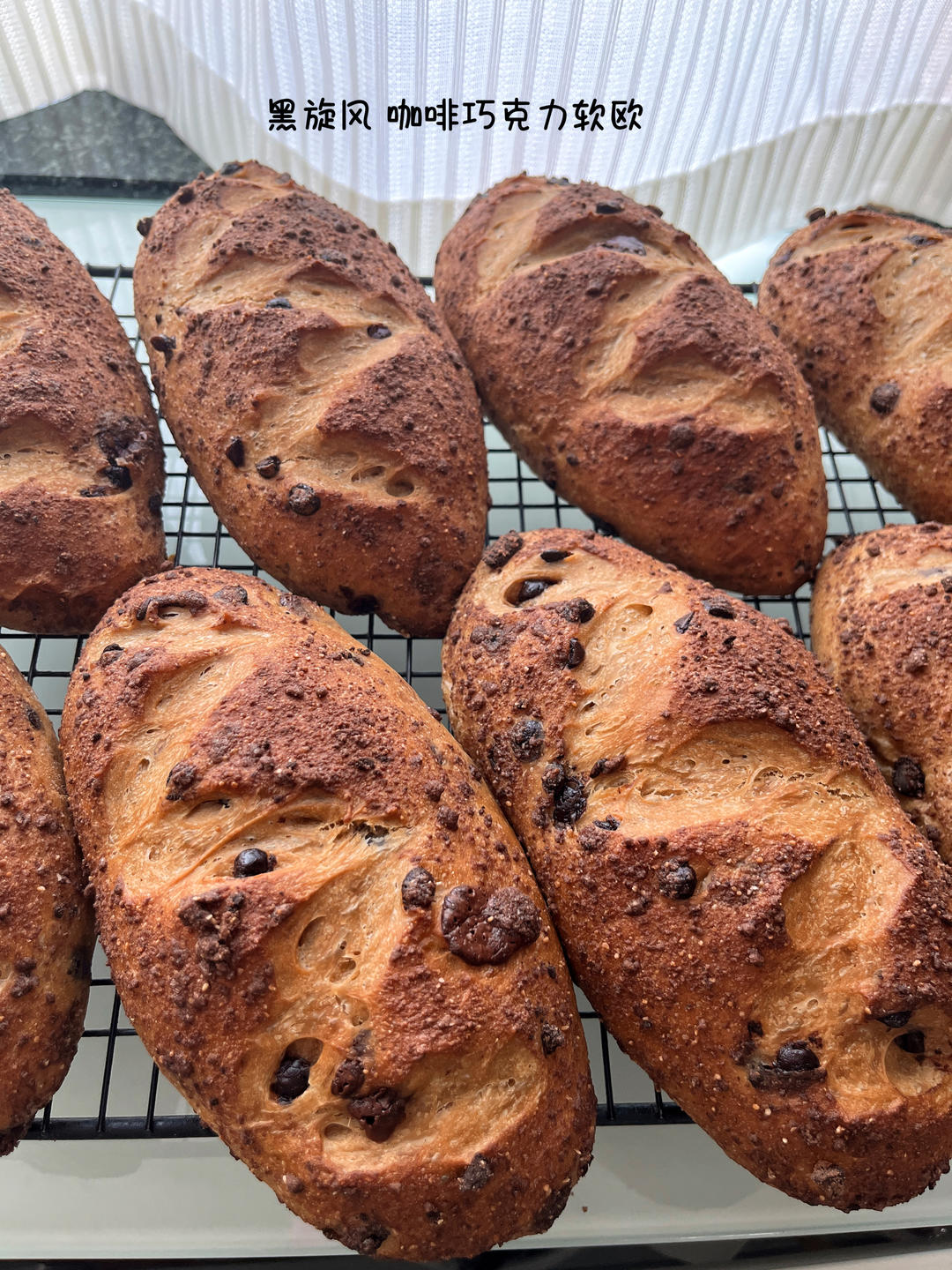 樱的玩乐空间 做过 超浓郁、巨好吃~咖啡巧克力软欧 #早餐•2024年6月17日# 生胚 130g/个sp50 200/190 13-14分钟 ,一炉10只同烤60%巧克力豆太甜了,下一次减少到120g 2024-06-17