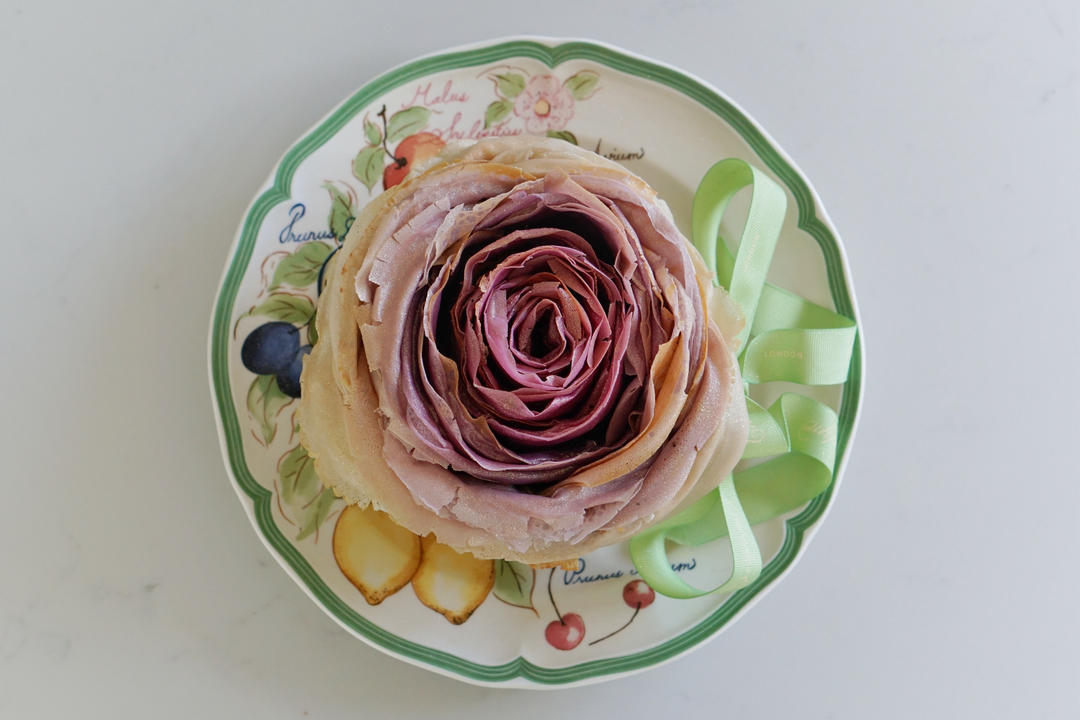 苏格兰人的吉普赛媳妇 做过 女神节玫瑰花千层蛋糕 紫薯玫瑰花蛋糕,摩飞烙饼机还在磨合,有的可丽饼边上烙过头干裂了,但是花的颜色还是很满意的。下次用慕斯圈修掉一部分。#下午茶•2024年6月18日# 2024-06-19