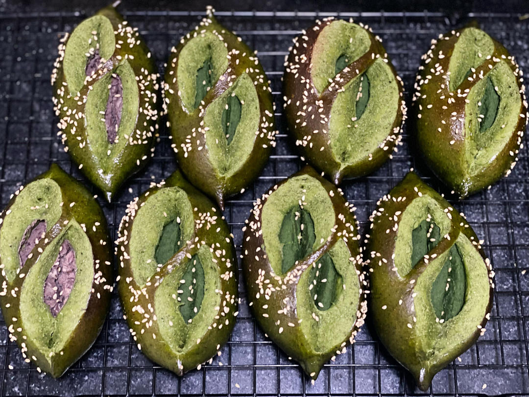 小小小小小静儿 做过 2024年06月25日 抹茶白豆沙碱水面包体配方:85x8高粉280低粉120砂糖20鲜酵母4盐8牛奶50冰水188抹茶粉11馅料40gx6白豆沙200g奶粉10g炼乳10g奶油10g 2024-06-25