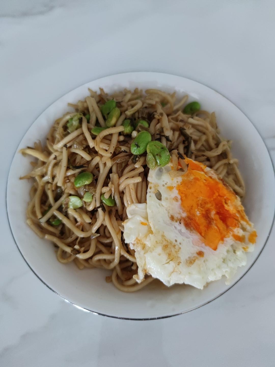 茭白毛豆腌菜炒面,味道还不错