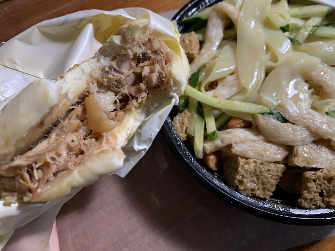 糖小朋友 做过 外卖集合! 第一次点 没踩雷!牛筋面还挺好吃的 好入味 可我还比较喜欢凉皮儿~ 肉夹馍还可以 料很足 如果陷再有汁水一点就好啦#点外卖啦# #午餐•2024年7月8日# 2024-07-08