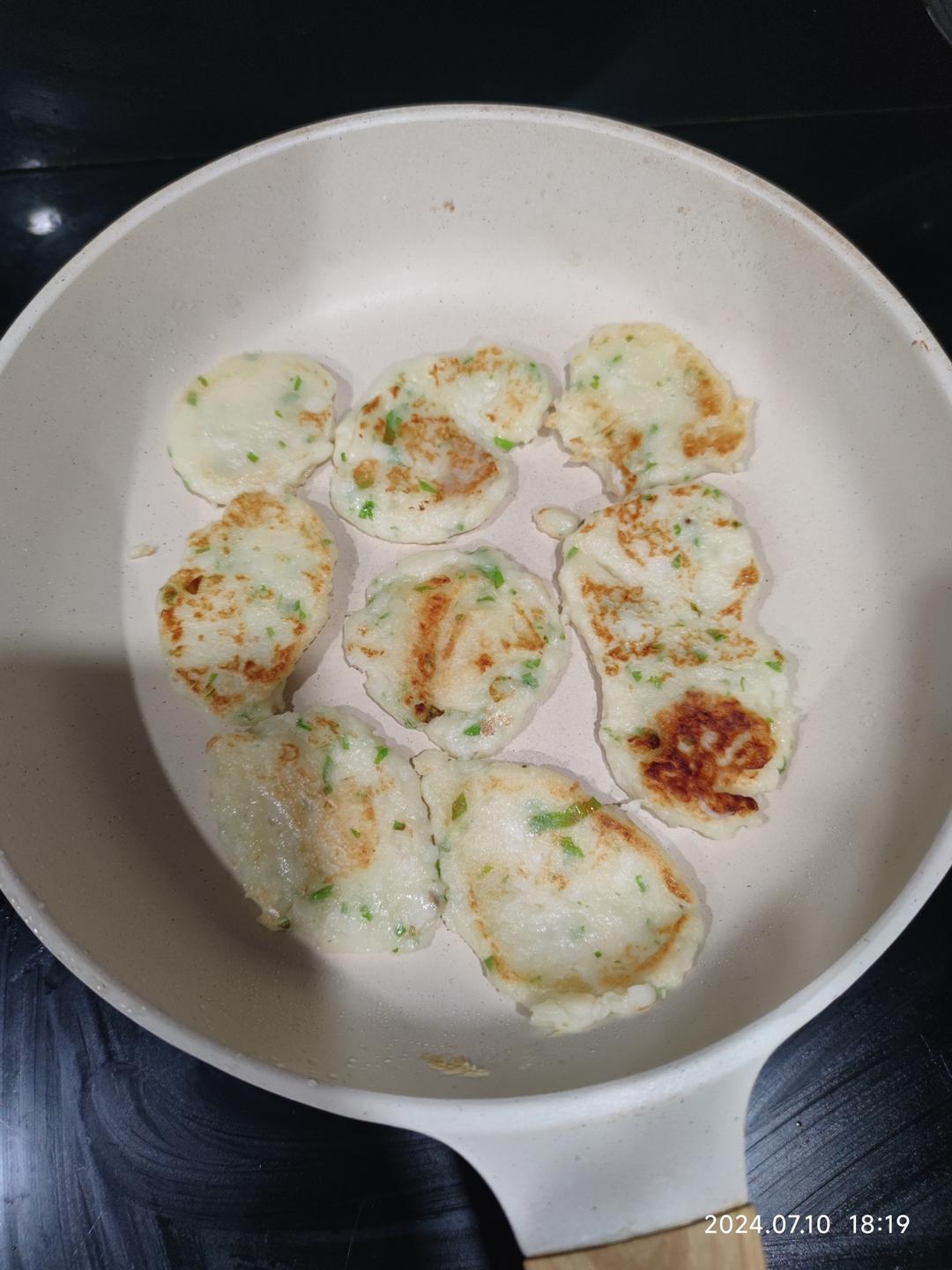 只一个你 做过 晚餐•2024年7月10日 葱香山药小饼 可可很爱吃一岁4个月宝宝👶🏻#晚餐•2024年7月10日# 材料:1.铁棍山药蒸熟,捣成泥2.加入奶粉,面粉,水,成团但又比较粘拿不起来的状态3.加入小葱沫和一丢丢丢盐4.锅里倒油,小火煎,压一压 2024-07-10