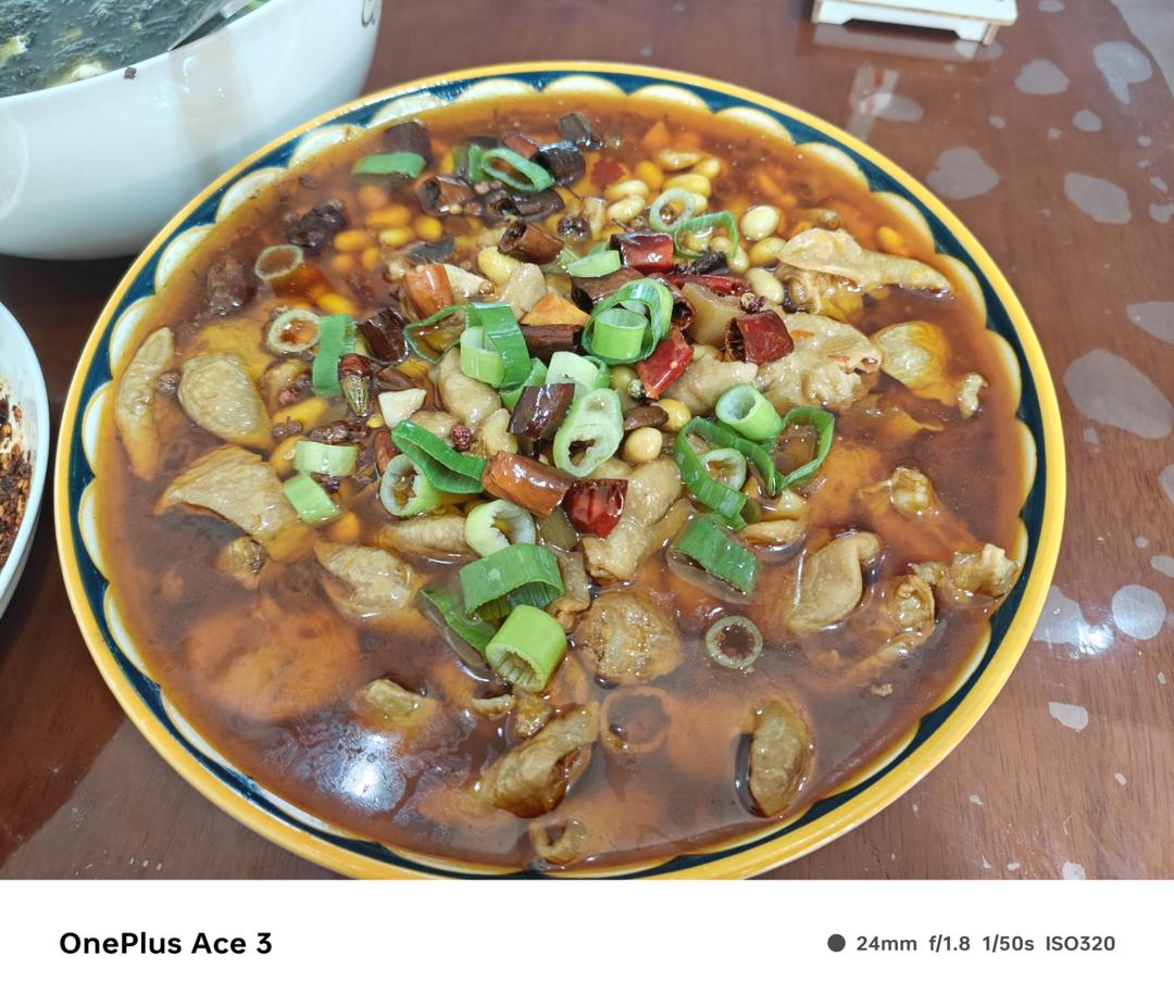 黄豆烧肥肠。