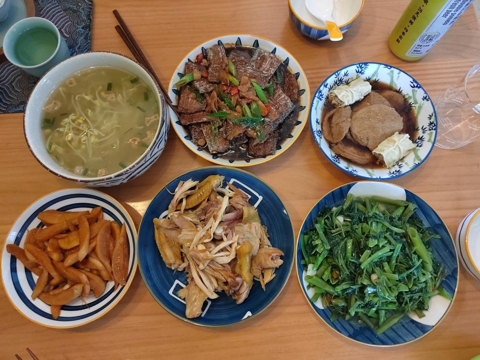 三伏天,三个人,五菜一汤。