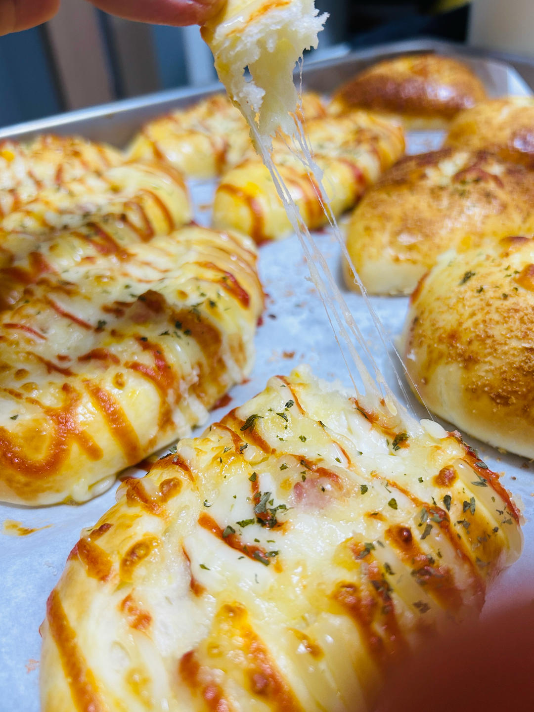 猪油圆饼 做过 2024年07月24日 波兰种200克高粉350奶粉30牛奶150糖40盐4酵母3黄油25鸡蛋1个蒸烤箱上下火上火180下火190放中下层,15分钟,上色很浅,吃上去有些发粘没熟的感觉,放在中层的面包上色很深,下次要放中层如果双层烤,下次还是开启热风循环185度试试看上色怎么样 2024-07-24