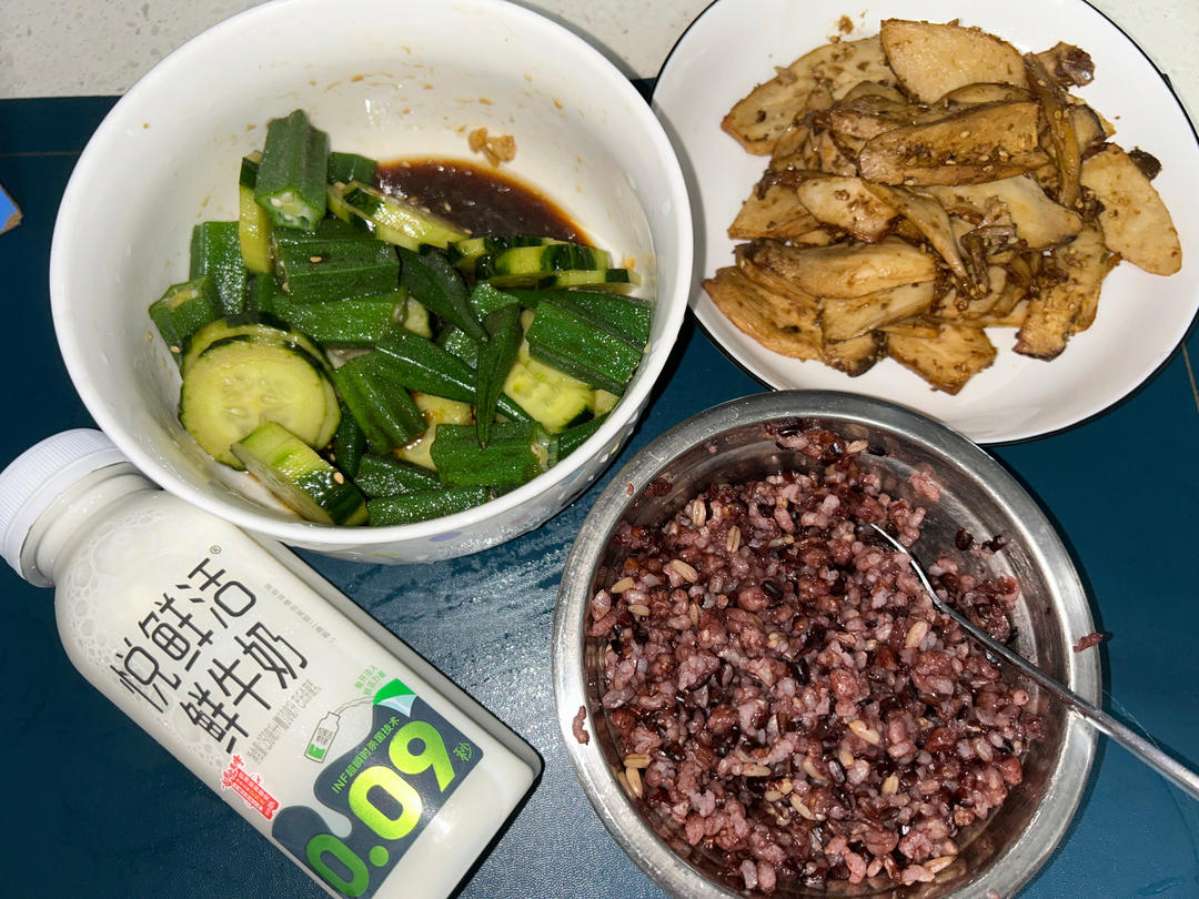 糙米饭➕杏鲍菇➕凉拌青瓜秋葵