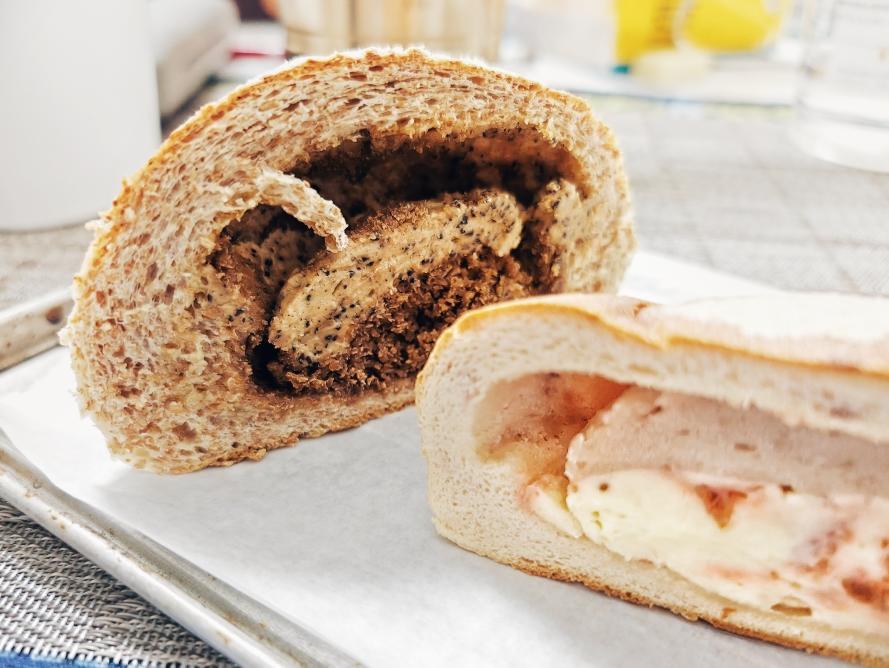 狐狸阿欣 做过 8月早餐马拉松 #早餐•2024年8月1日# 新买的面包到了,从生椰拿铁包和玫瑰草莓奶酪包上各切一角,早餐吃,刚刚好。看看这个月能不能把早餐都凑成双数的元素。🍑这次忘了拍好吃的了。肉骨茶、葱油鸡、番茄莜面卷……哦,除了歌帝梵的黑巧克力冰淇淋。拍了但是不准备发,那太明显了。按住。巧克力真好吃。又吃又拿,满心欢喜。 2024-08-01